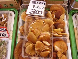 | 飛騨高山朝市のお店 呼び名 霜降りしめじ たべ方 |