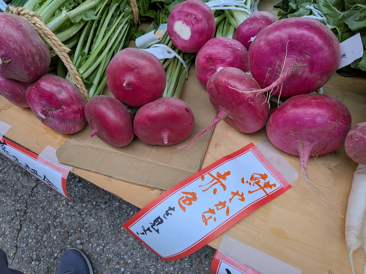 大きな赤かぶや大根に、お客様も驚きの声が絶えません。