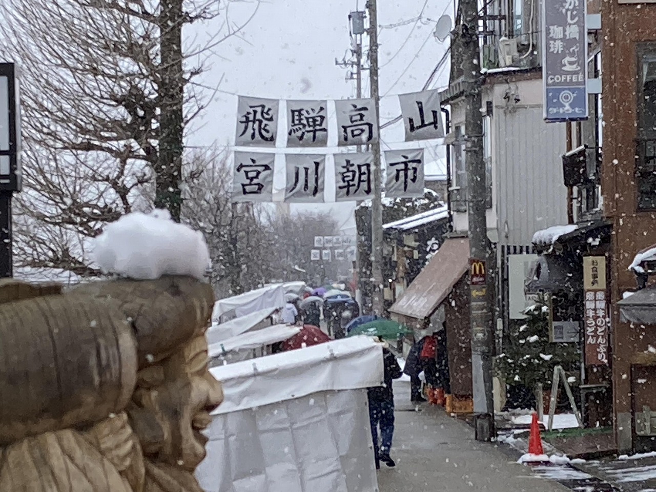 HOME> お知らせ一覧> お知らせ詳細 11月から3月までの冬季営業時間について 11月23日から、3月末日まで、 飛騨高山宮川朝市の営業時間は午前8時から午前11時30分となります。 定休日はありませんが、大雪や極端な天候の悪化のときは極端に出店数が減ります。 年末年始も同様に出店者の数はその都度変化しますので、 確実に賑やかに開催されているというお約束はできかねますので、予めご了承ください。 お知らせ一覧に戻る>>